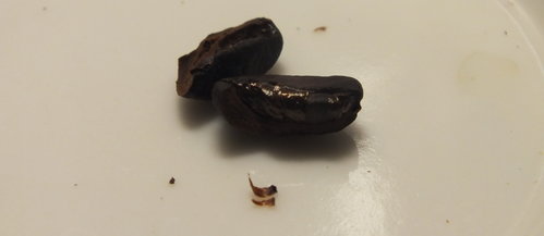 很明顯的,左邊這顆豆子幾近焦炭化了