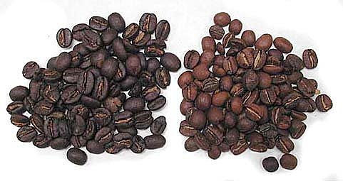 除了「溫度」外另一個影響咖啡風味的烘焙因素為「時間」,烘焙的時間要看烘焙溫度及烘焙製程而定,通常約在12分鐘左右,也有採高溫烘焙將時間縮短到90秒,另有以低溫烘焙可將時間拉長到40分鐘的都有,端賴所需咖啡豆的口味而定,是一門獨門的學問呢!      但到底要將咖啡烤到什麼程度才算OK,真的是見仁見智,而且會因所在國度的不同而有特定的喜好。     儘管烘焙術語和烘焙程度分歧,咖啡的烘焙程度,就如同牛排有一分熟rare、三分熟medium rare、五分熟medium、七分熟medium well、全熟well done的區分,也有著類似的分類。大致上可分出:輕度烘焙、中度烘焙、深度烘焙以及雙重烘焙等四種類型。 各種不同程度之烘焙 輕度烘焙(light or pale roast):經度烘焙用於溫和的咖啡豆,讓豆子的細緻口感和香氣充分保存,早餐時適合飲用輕度烘焙咖啡豆,也適合加牛奶。 中度烘焙(medium roast):氣味強烈的咖啡豆用中度烘焙,才能引出香濃咖啡。 重度及中度烘焙 重度烘焙(full roast):尚未到如歐陸烘焙那般焦黑地步。 雙重烘焙(double or high roast):一般又稱為「歐陸咖啡」或「餐後咖啡」,喉韻回甘有苦味,應做為黑咖啡飲用。通常不屬於高級咖啡豆,用上選咖啡豆做歐陸咖啡簡直是暴殄天物,因為雙重烘焙會使原有味道與香氣流失。     歐洲和禮文特(The Levant)地區(註2)以及咖啡生產國都喜愛深度烘焙咖啡豆,義大利人烘焙豆子簡直是要把咖啡豆弄到碳化(carbonization)的地步才肯罷休。美國人喜愛中度烘焙,至於英國咖啡業者則是認為烘焙愈深,愈容易失去原有的香氣。近年來,英國人四處旅行,咖啡口味變成偏愛重烘焙咖啡豆,現在演進為比較折衷的口味,即香味宜人的深度烘焙。