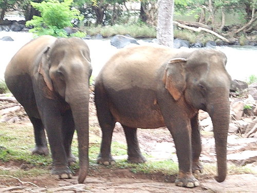 一早起來就看到我們前天晚上預訂的兩頭大象正在悠閒的吃草.享用早餐呢~~