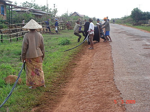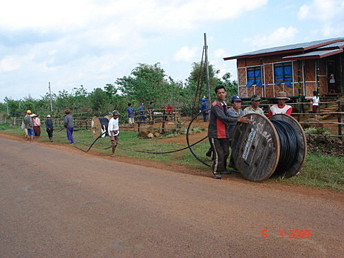 村民也都來幫忙~手中的纜線每推進一呎就朝幸福多邁進一步