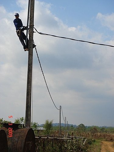 架設好的電線有如盤據在半空的長龍.這可是一條通往幸福的電線啊!!