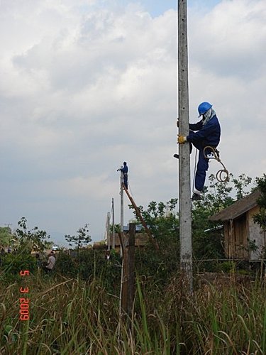 中段的電力架設正如火如荼的展開.各位有沒有想過這幾位法國朋友要上上下下正些店電桿幾次阿