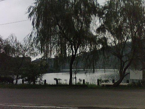 門口的垂柳建構出一幅美麗的景色(可惜手機畫素不夠拍的不好)