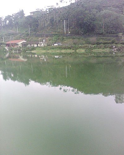 遠方山的倒影在水潭邊顯得特別的寧靜