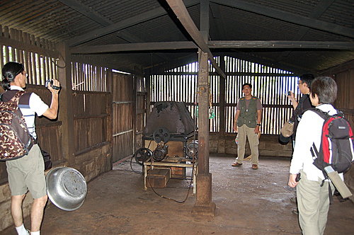 ALAN在門口跟大家介紹當地的咖啡文化.他說這家烘焙廠是當地第二大的烘焙廠.咖啡的等級是看摻了多少的白米來決定價格.(想不到來自台灣的白米在這裡是這麼用的