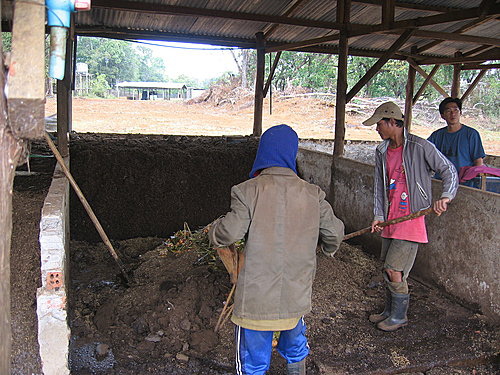 腳底下的這一堆有機肥是迪爾它咖啡園生產出高品質有機豆的重要元素之一