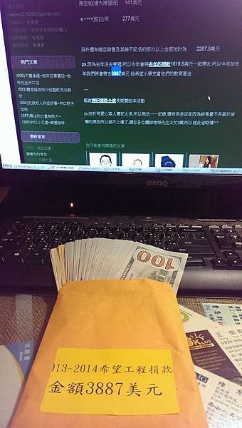 ps.因為去年沒去寮國,所以今年會將去年的捐款1619.5美元一起帶去,所以今年加去年我們將會帶去3887美元 給希望小學充當他們的教育基金