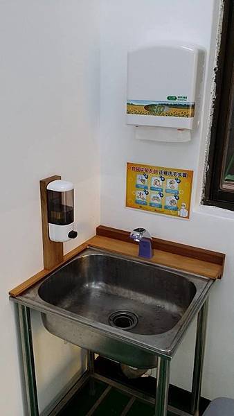 由於是熟豆所以在進廠房操作機器之前都要人員經過消毒洗手,確保安全無虞